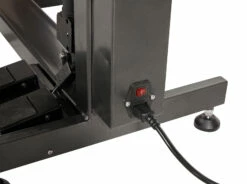 - The table features an adjustable chassis powered by an electric motor, providing a comfortable working height.