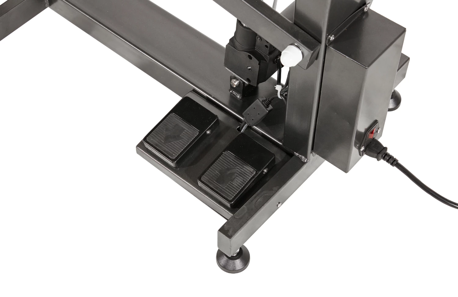 - The table features an adjustable chassis powered by an electric motor, providing a comfortable working height.