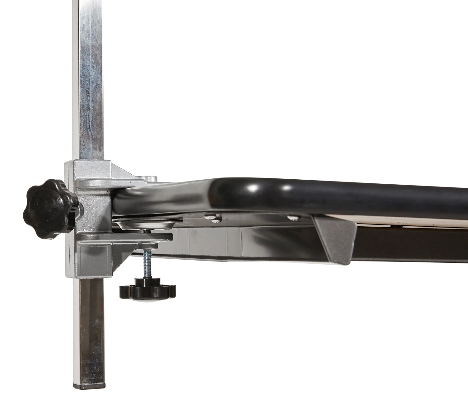 - Constructed from high quality, durable materials, this grooming table features adjustable feet.