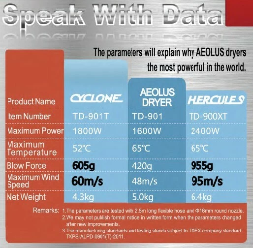 - New Launched 52mm diameter hose system and highly improved motor, give the user a much higher blow force of 605 grams, which is an increase of 45%, and an unmatched wind speed of 60 m/s, which is an increase over previouse model by 40%.