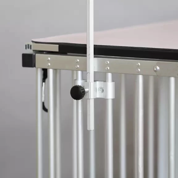 - Aeolus dog show grooming arm kit comes with a stainless steel, foldable sturdy grooming arm and an aluminum clamp.