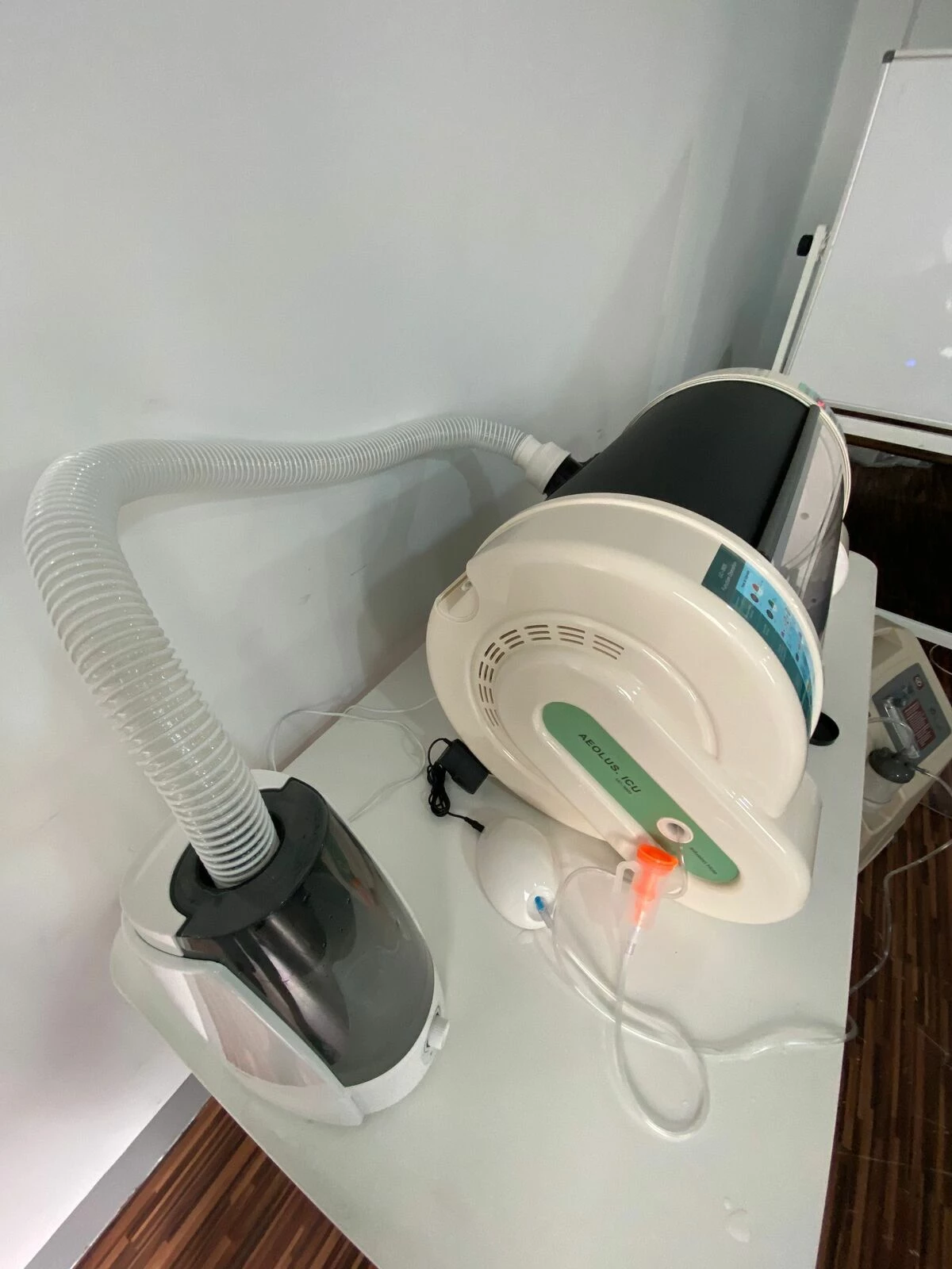 UC1805 have an external humidifier and double air compressor installed in the nebulization system, it is to ensure a more secured working stability. Even one line gets kinked during the operation, the other compressor will continue to provide enough air flow to complete the required operation.