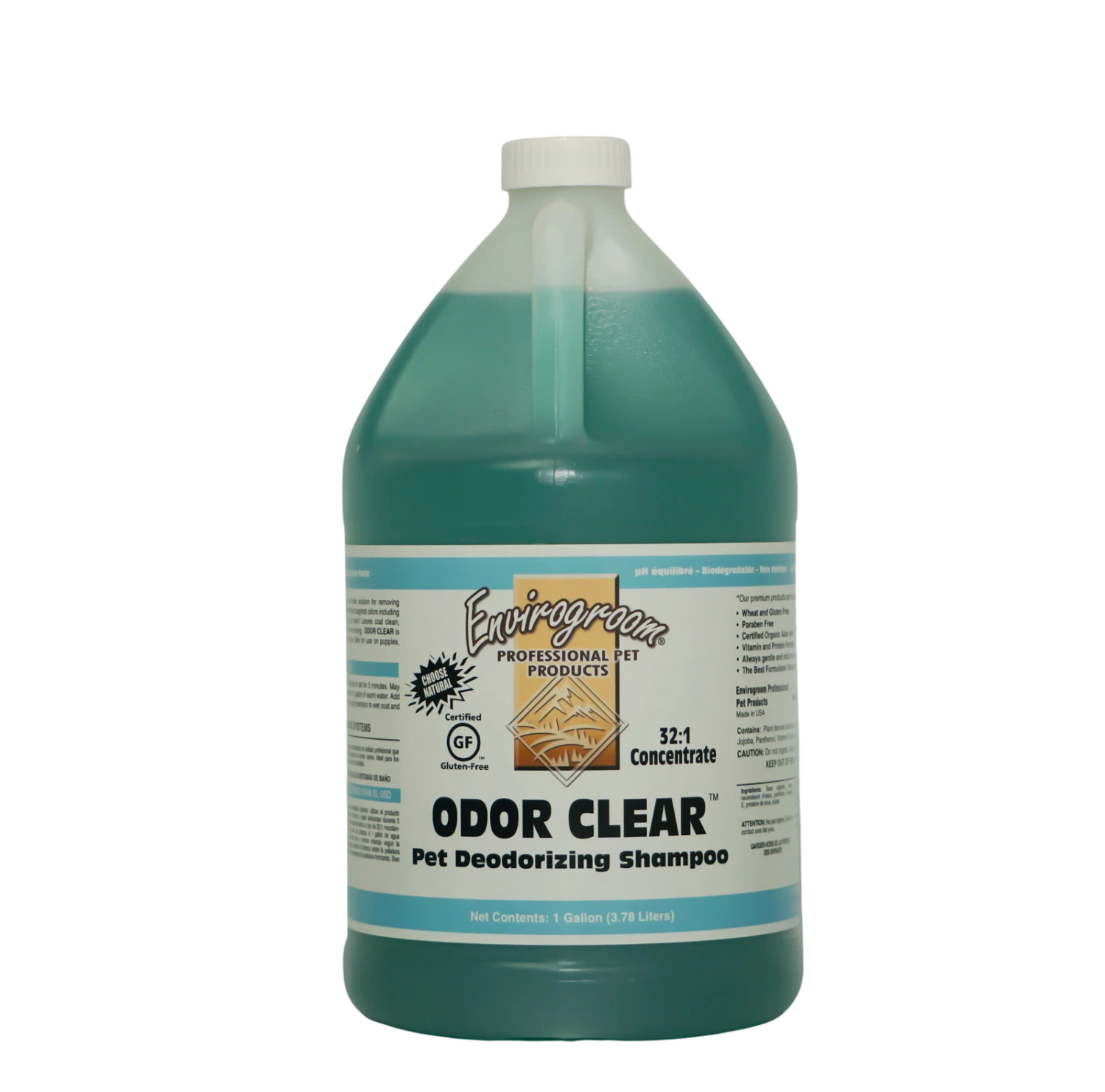 This premium professional deodorizing shampoo is the clear solution for removing unwanted odors. It works fast and effectively to eliminate the toughest odors including the worst skunk odor! Makes a professionals tough job easy! Leaves coat clean, manageable and is mild and non irritating to the skin. Never drying. ODOR CLEAR is vitamin and protein fortified to condition the skin and coat. Safe for use on puppies, kittens and horses. Available in 17 oz & 1 Gallon sizes.