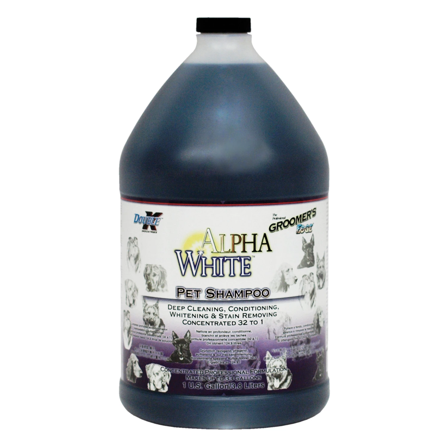 ALPHA WHITE™ deep cleaning conditioning shampoo is the perfect choice for deep, thorough, yet gentle cleaning of animals with white coats or markings. Removes stains and yellowing. Deodorizes. Leaves hair lustrous and shiny. Extreme concentration creates great value! Long-lasting results leave animals looking, feeling and smelling great long after ALPHA WHITE™ is used. Humectant and emollient rich formula enriches the animal’s hair and skin. May be used regularly for beautiful, show ring results.