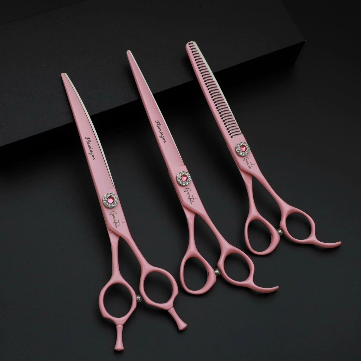 Groomtech Flamingos Grooming Scissors Kit, perfect for everyday use by professional groomers.