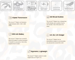 Joyzze™ Raptor is designed with a high-performance smart brushless motor that delivers up to 3800 SPM of power. This powerful, yet lightweight machine can tackle a wide range of applications and features a 3-speed transmission.