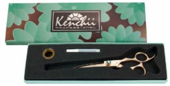 Kenchii Rosé scissors and thinners are made from our proprietary level 2 Japanese molybdenum materials enrobed with rose gold titanium. Semi-convex, microserrated edge is designed to reduce slippage and enhance cutting performance. Great for everyday grooming.