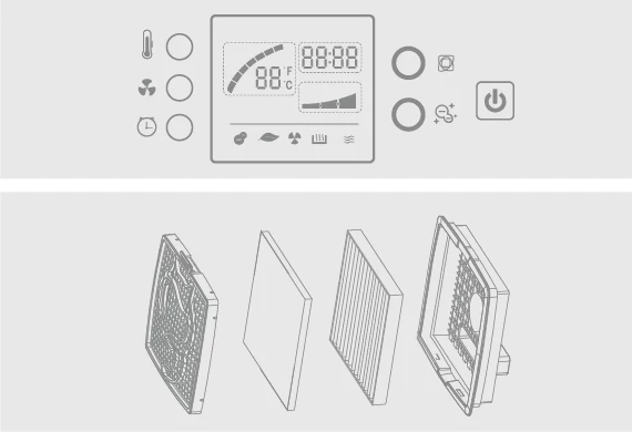 What you need to do is just to choose a suitable working mode, set temperature, wind speed and the running time. The inside of the cabin and air inlet filters are easy to clean and be replaced.