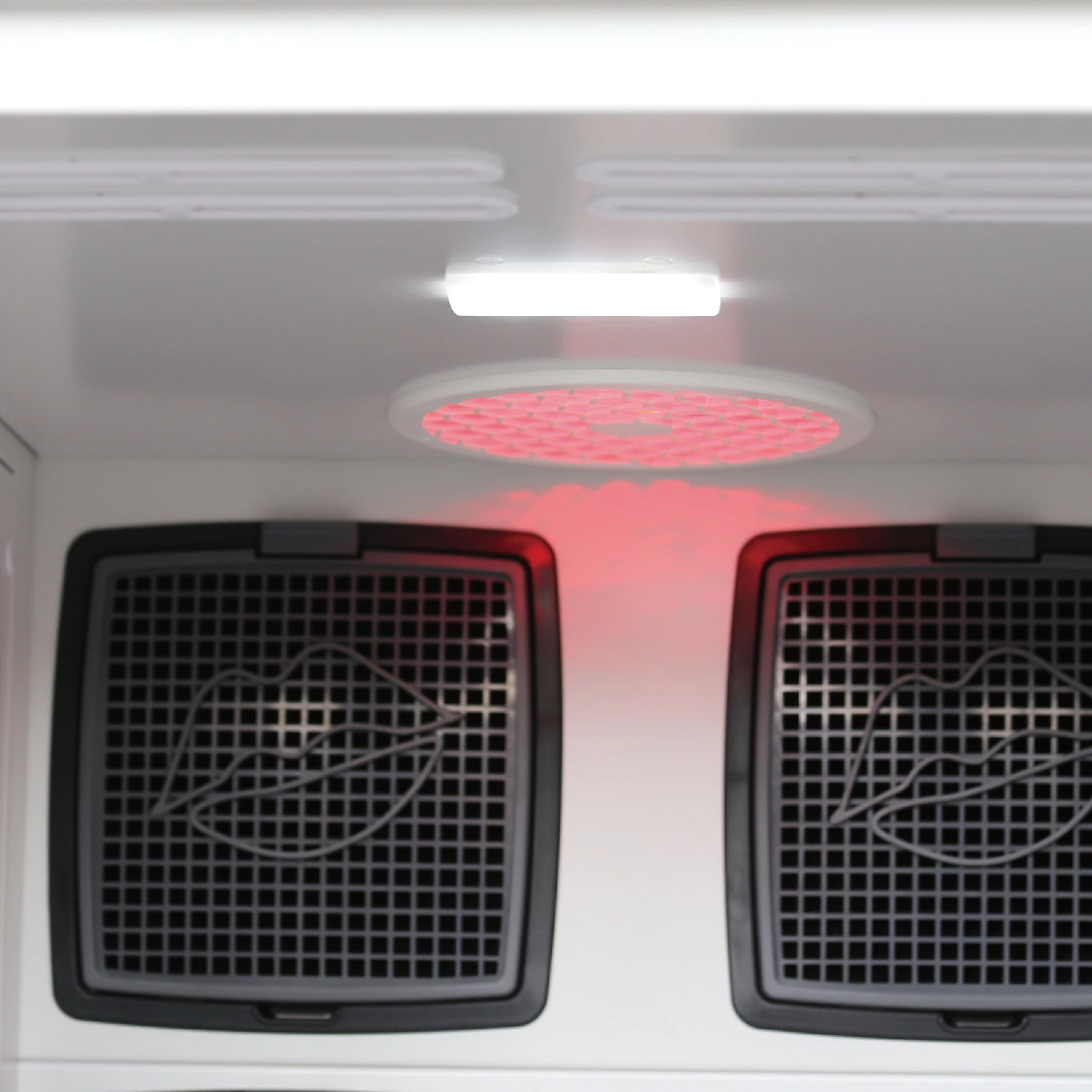 TD-907T will dispense hot air with highly-concentrated negative ions to make the coat smoother, more moisturized and easier to comb and brush. Negative ions can also purify the air in the cabinet.