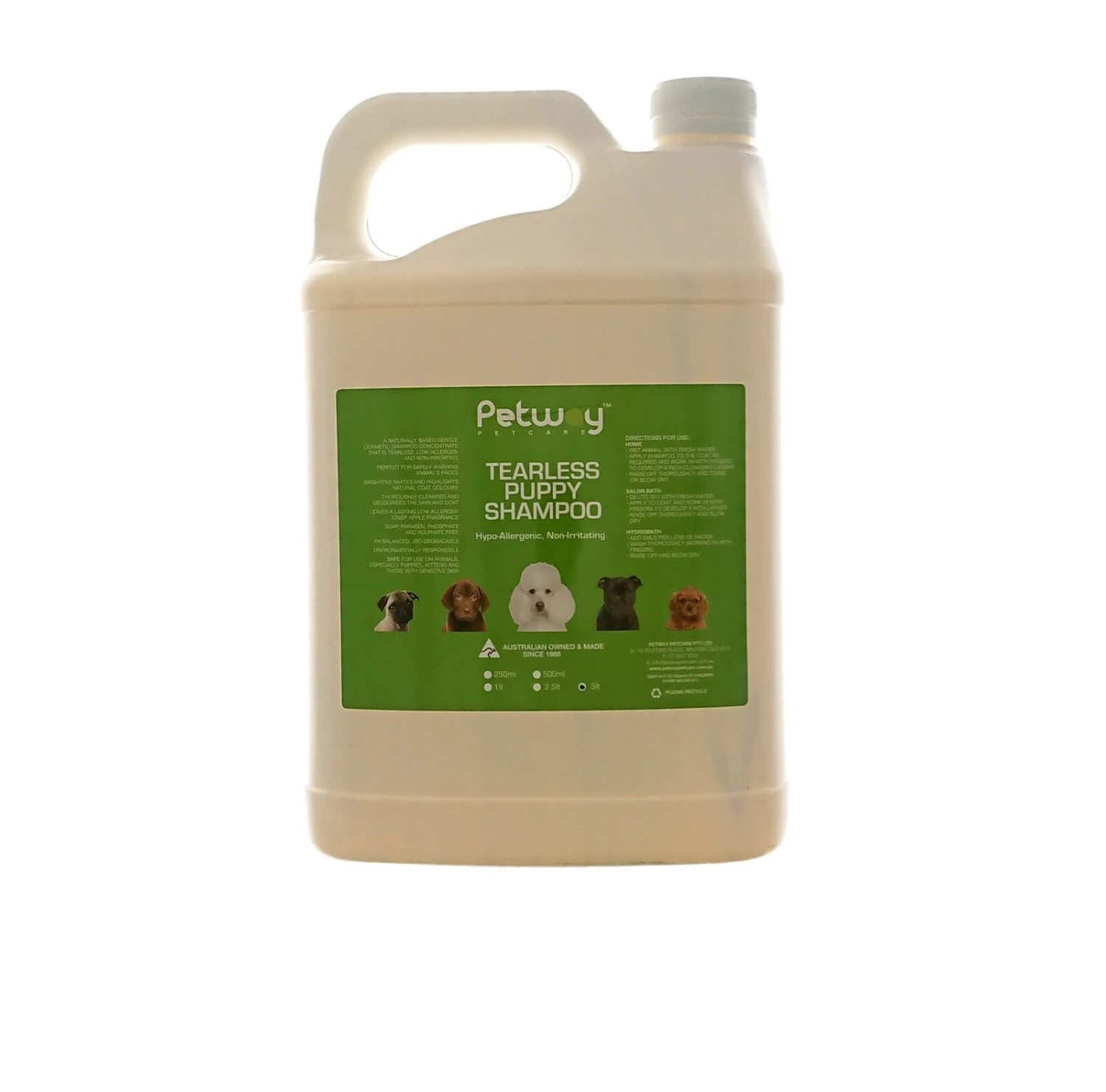 Petway Petcare Tearless Puppy Shampoo a naturally based gentle cosmetic shampoo concentrate. It is tearless, non-irritating and has a low allergen delicious crisp apple fragrance. Great for puppies and kittens, perfect for safely washing animals faces and super sensitive animals. The low allergen fragrance makes it safe also for owners who suffer allergies. Brightens whites and highlights natural coat colours. Thoroughly cleanses and deodorises the skin and coat.
