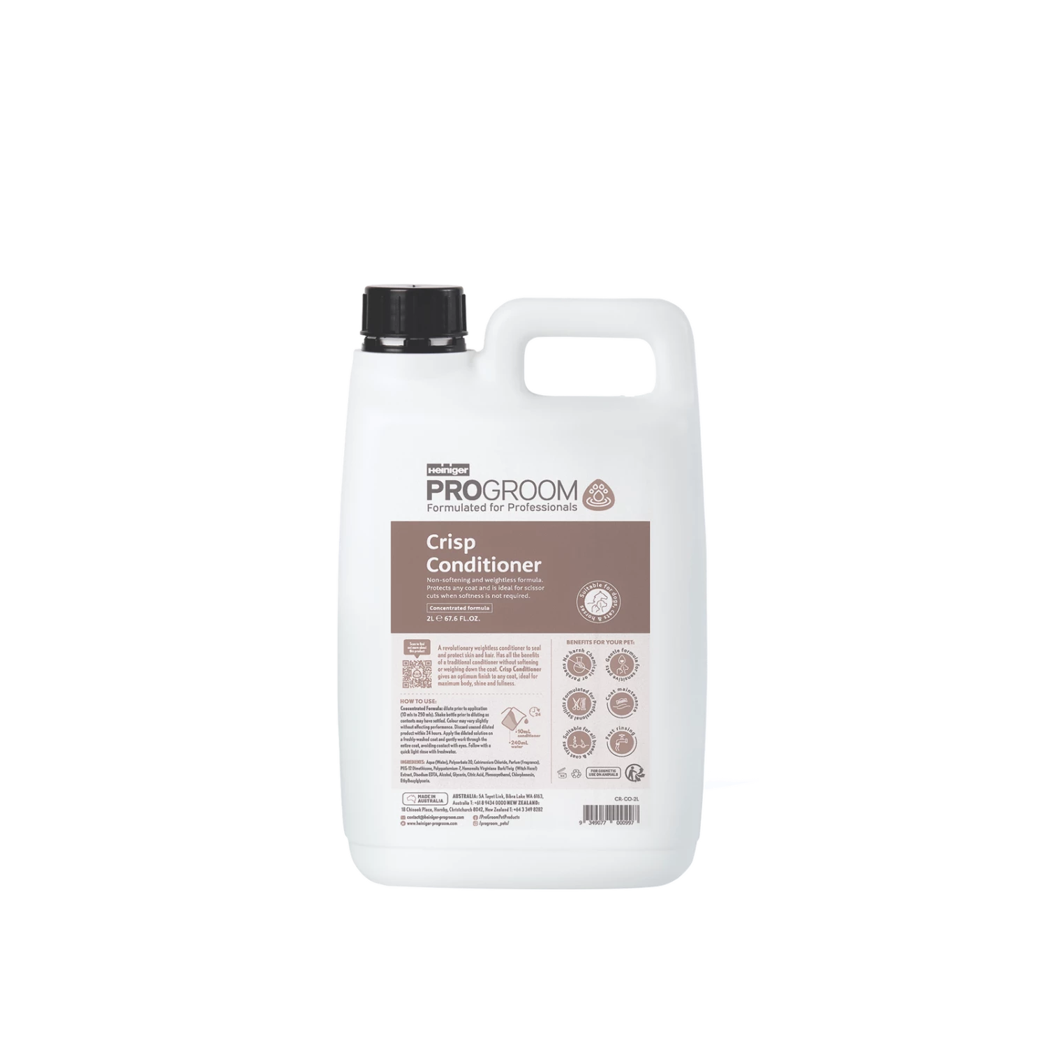 Crisp a unique NON- Softening Conditioner that gently acidifies and seals the cuticle layer and offers protection to skin and coats against damage caused from pet styling and other harsh elements. This new revolutionary conditioner leaves coats crisp and fluffy without the heaviness often caused by normal conditioners.
