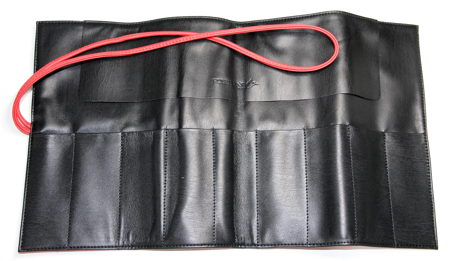 - Package: Leather like red wrapping pouch for up to 9 scissors