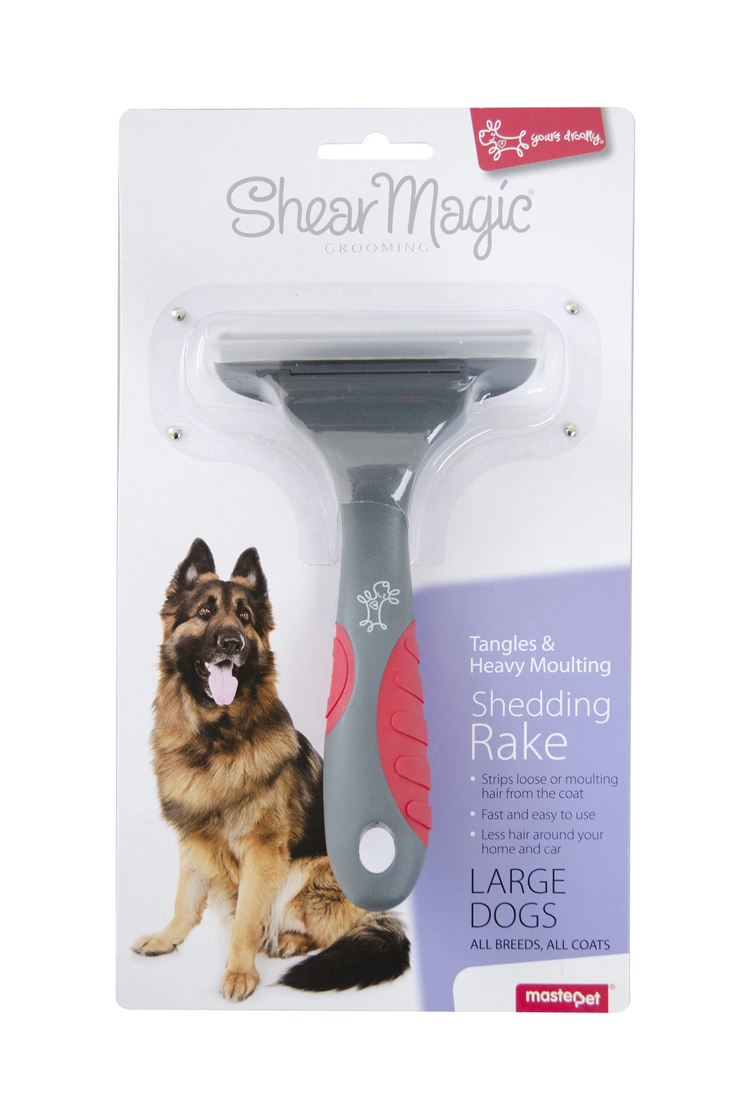 The Shear Magic Shedding Rake is fast and easy to use. With an easy grip handle, this rake is lightweight, featuring contoured head strips to help thin the undercoat and remove dead hair to get an evenly polished look.