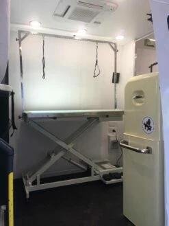 Both electric & hydraulic lifting tables / baths are not recommended to be installed in a mobile grooming station. Warranty for those installed will be reduced to 6 months. Please refer to the warranty policy on our website for more information.