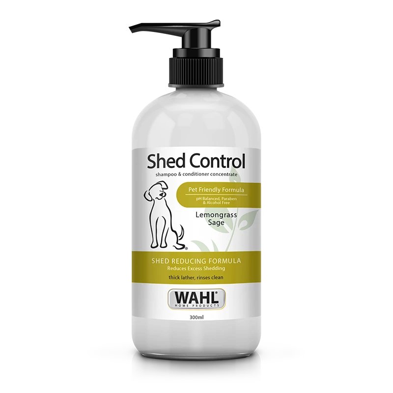 Wahl’s Shed Control Shampoo contains lemongrass, sage, oatmeal, and aloe to reduce shedding and dander, whilst leaving the coat clean and refreshed.